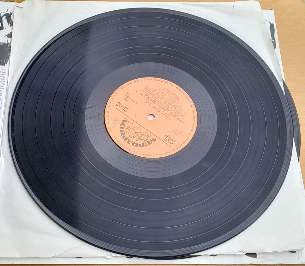 Platňa je vyskúšaná, je v poriadku. LP - long play, dlhohrajúca platňa, "elpéčko".
