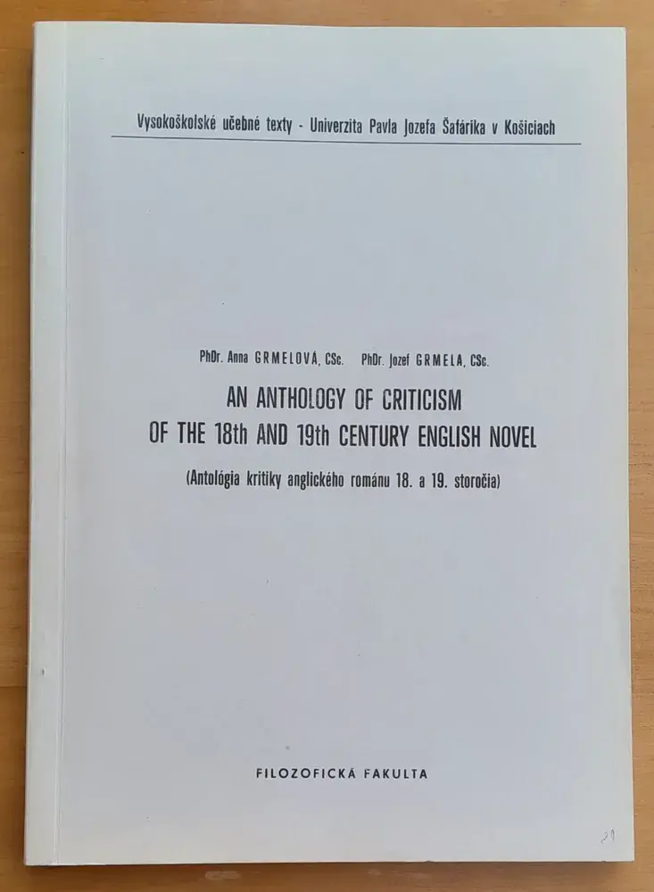 - An anthology of criticism of the 18th and 19th century english novel / Antológia kritiky anglického románu 18. a 19. storočia