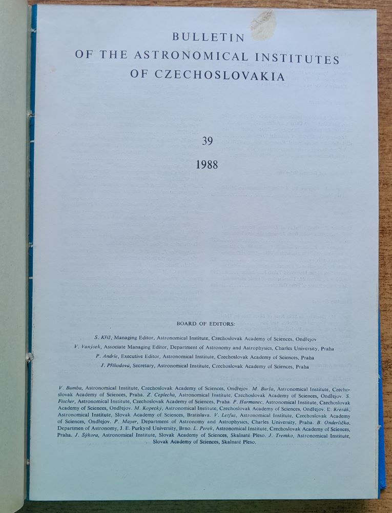 - Bulletin of the Astronomical Institutes of Czechoslovakia 1 - 6 / 1988