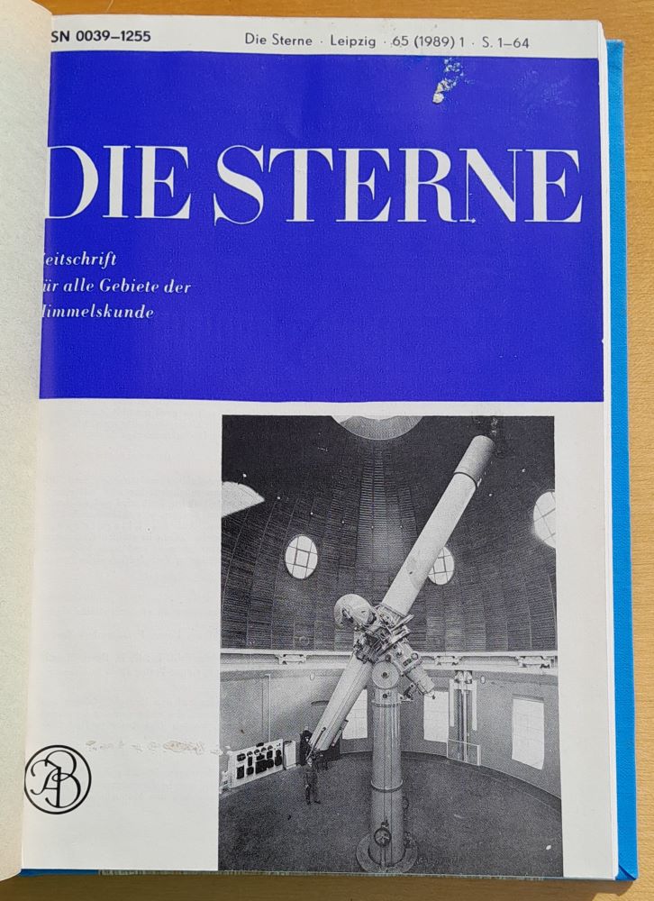 Hviezdy. Časopis pre všetky a o všetkých oblastiach astronómie v nemeckom jazyku. Založený Robertom Henselingom. V knihe sú pečiatky.