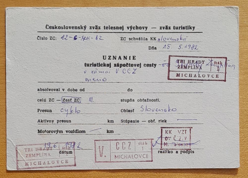 Uznanie turistickej zápočtovej cesty - 1982